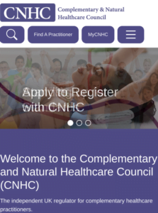 CNHC is an independent UK regular for complementary healthcare practitioners. CNHC was set up with government support to protect the public by providing a UK voluntary register of health practitioners. CNHC’s register has been approved as an Accredited Register by the Professional Standards Authority for Health and Social Care, a body accountable to Parliament.